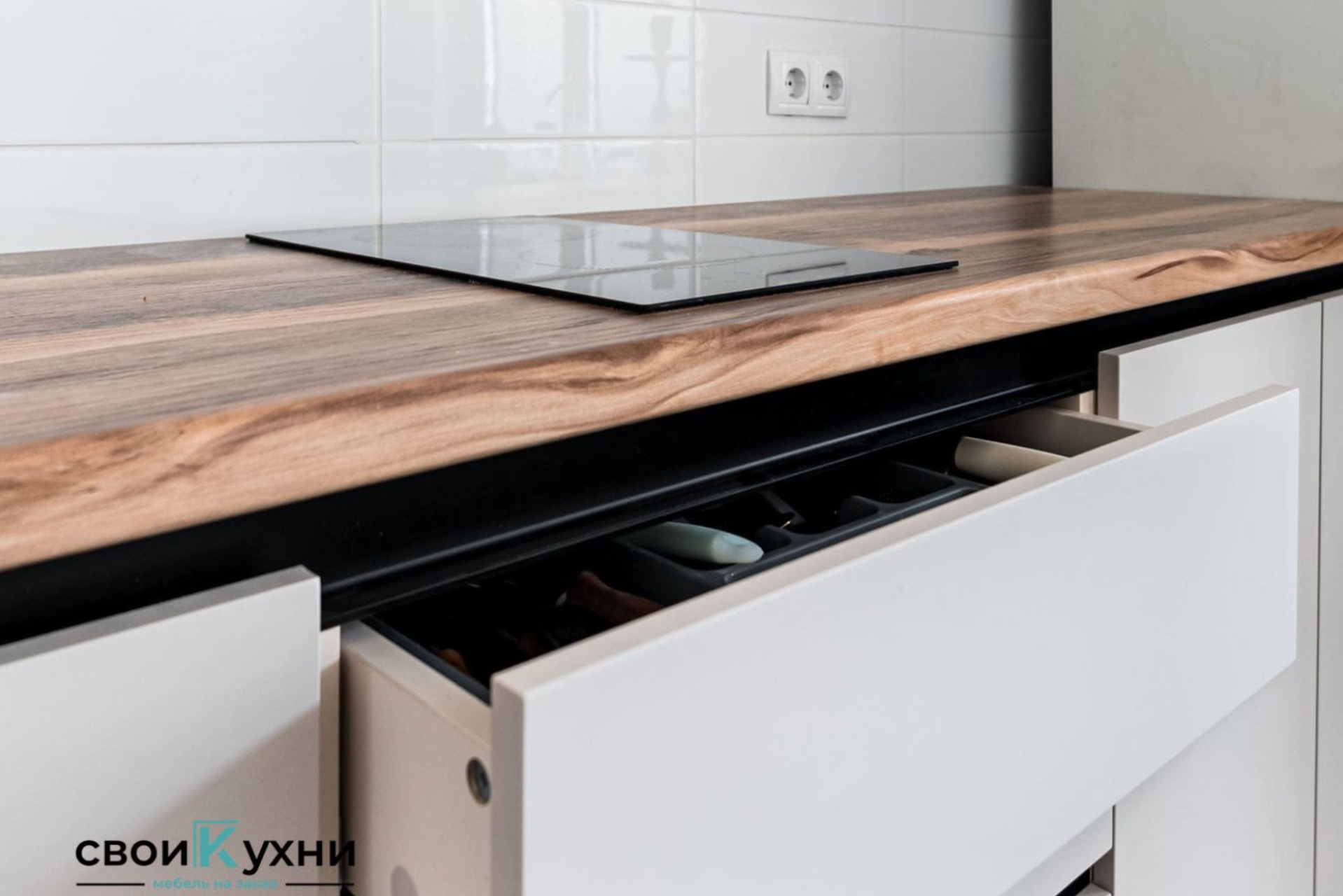 - Организуйте хранение: Используйте выдвижные ящики, полки-карусели и другие приспособления для удобного хранения кухонной утвари.